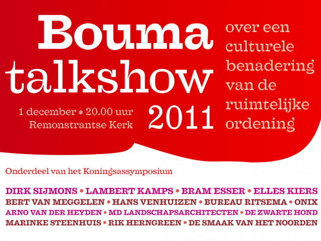 De Boumatalkshow was dit jaar onderdeel van het Koningsassymposium. Met dit symposium sloot Hans Venhuizen zijn eerste jaar als gebiedsintendant van de Koningsas af. Van de Regio Groningen - Assen kreeg Venhuizen begin 2011 de opdracht op zoek te gaan naar de bijzondere kwaliteiten van dit gebied, die kwaliteiten uit te d(r)agen en waar mogelijk beter zichtbaar te maken. Het symposium was een samenwerking tussen de gebiedsintendant, architectuurcentrum Platform GRAS en de Regio Groningen – Assen.